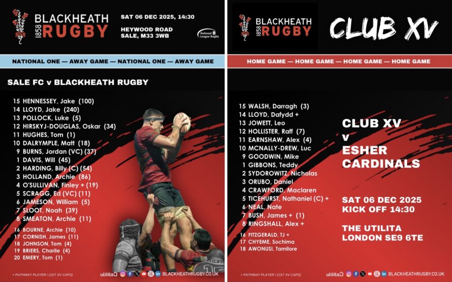 National One continues tomorrow as Blackheath Rugby travels to Sale FC, kicking off at 14:30. Sale are only three years younger than us, and have written a great piece ahead of the game, celebrating our joint heritage (https://www.salefc.com/welcoming-the-originals). If you’re travelling to the game, check out Gary’s Guides for useful information about the day https://blackheathrugby.co.uk/garys-guides/. For those of you who …