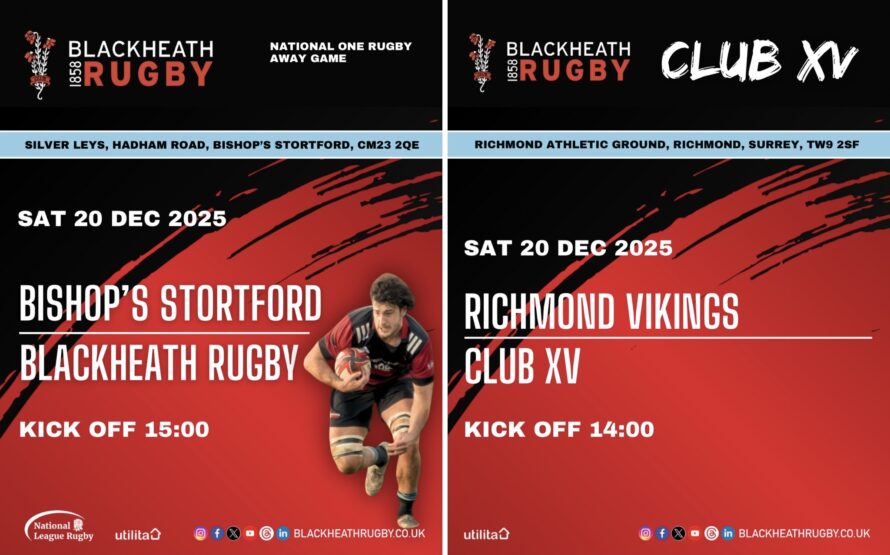 This Saturday, Blackheath Rugby is travelling to Hertfordshire for the next game of the National One season — the final match of 2025 — playing Bishop’s Stortford and kicking off at 15:00. If you want your rugby slightly nearer to home the Club XV will be playing Richmond Vikings at the Richmond Athletic Ground. They are kicking off at 14:00 …