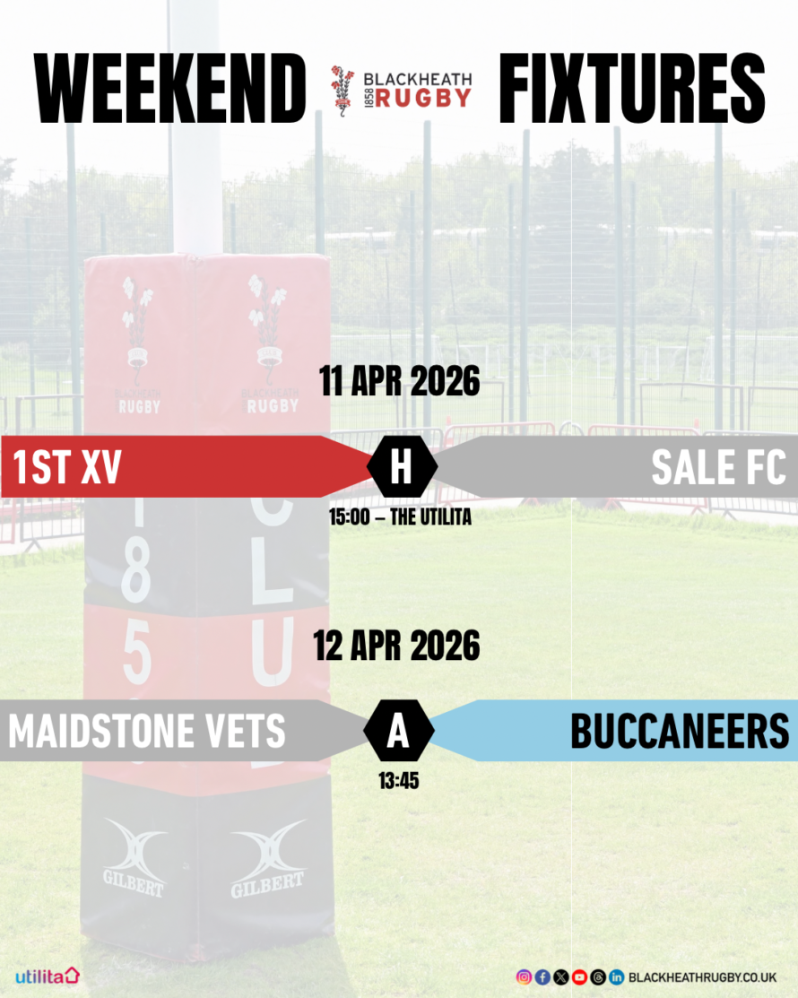 Good luck to the Blackheath senior teams who are in action this weekend! Saturday 11 April 🏉 1st XV home to Sale FC, KO 15:00 Sunday 12 April 🏉 Buccaneers away to Maidstone Vets, KO 13:45 #blackheathrugby #blackheathfc #club #oneclub