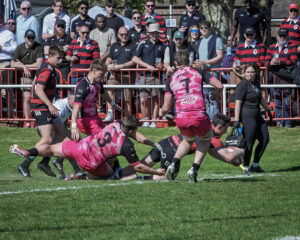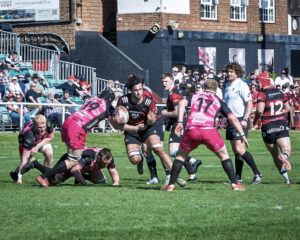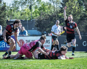 Archie Smeaton took the re-start, and Sam Morley’s lovely flat pass sent Raff Hollister breaking from his own half of the field, the centre finding Jake Hennessey on his shoulder to finish off, and with Luke Pollock squeezing in at the corner, after Blackheath had successfully counter-rucked, the Club were 19-0 ahead on only eleven minutes.