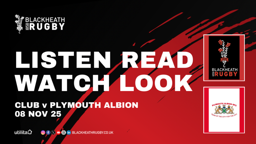 This Saturday Blackheath Rugby is travelling to Rotherham for the next game of the National One season, playing the Titans and kicking off at 14:00 If you want your rugby nearer to home the Club XV will be playing Esher Cardinals at the Utilita. They are kicking off at 13:00 and would love to see you there! Don’t forget the …