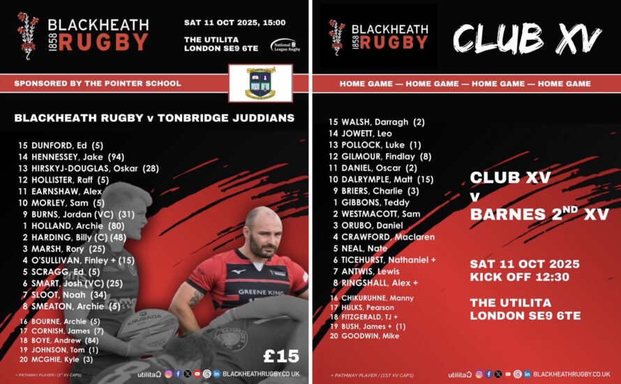 National One is back at the Utilita tomorrow, and we can’t wait to welcome Tonbridge Juddians through the gates in a game sponsored by The Pointer School. Kick off is at 15:00 and tickets cost £15 (buy online in advance https://blackheathrugby.ticketco.events/uk or on the gate). And it’s a double header, which means the Club XV are also at home, kicking …