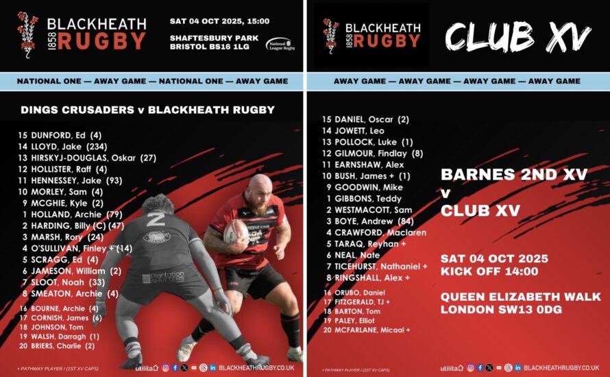 National One continues tomorrow as Blackheath Rugby travels to Bristol to play Dings Crusaders, kicking off at 15:00. If you’re travelling to the game, check out Gary’s Guides for useful information about the day https://blackheathrugby.co.uk/garys-guides/ If you’re not going to Bristol and would like to watch some rugby slightly nearer to home, the Club XV are playing Barnes 2nd XV, …