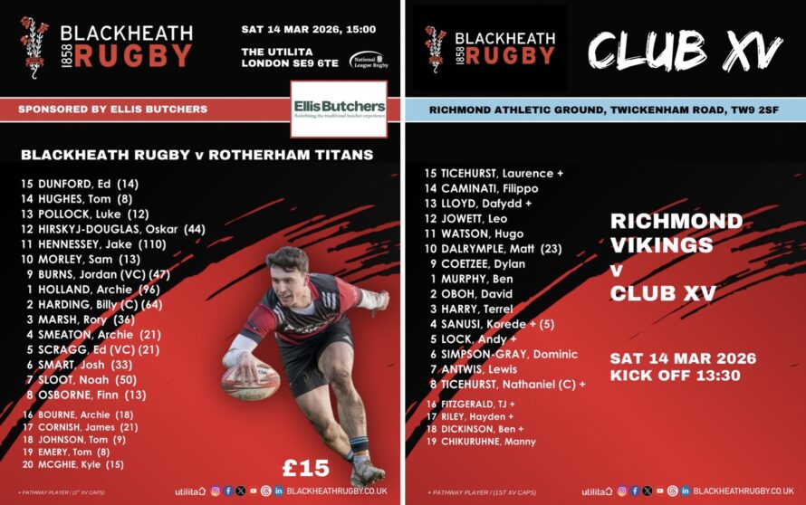 National One returns to the Utilita tomorrow, and we’re looking forward to welcoming Rotherham Titans through the gates in the next big game, sponsored by Ellis Butchers. Kick off is at 15:00 and tickets cost £15 (buy online in advance https://blackheathrugby.ticketco.events/uk or on the gate). Members can bring two guests for free, and local clubs can take advantage of our …
