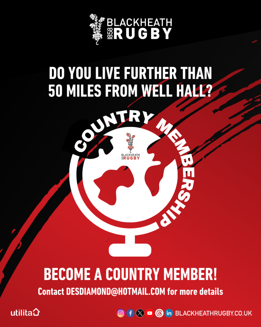 Do you live further than 50 miles away but still want to support Blackheath Rugby? Join the Club as a Country Member!