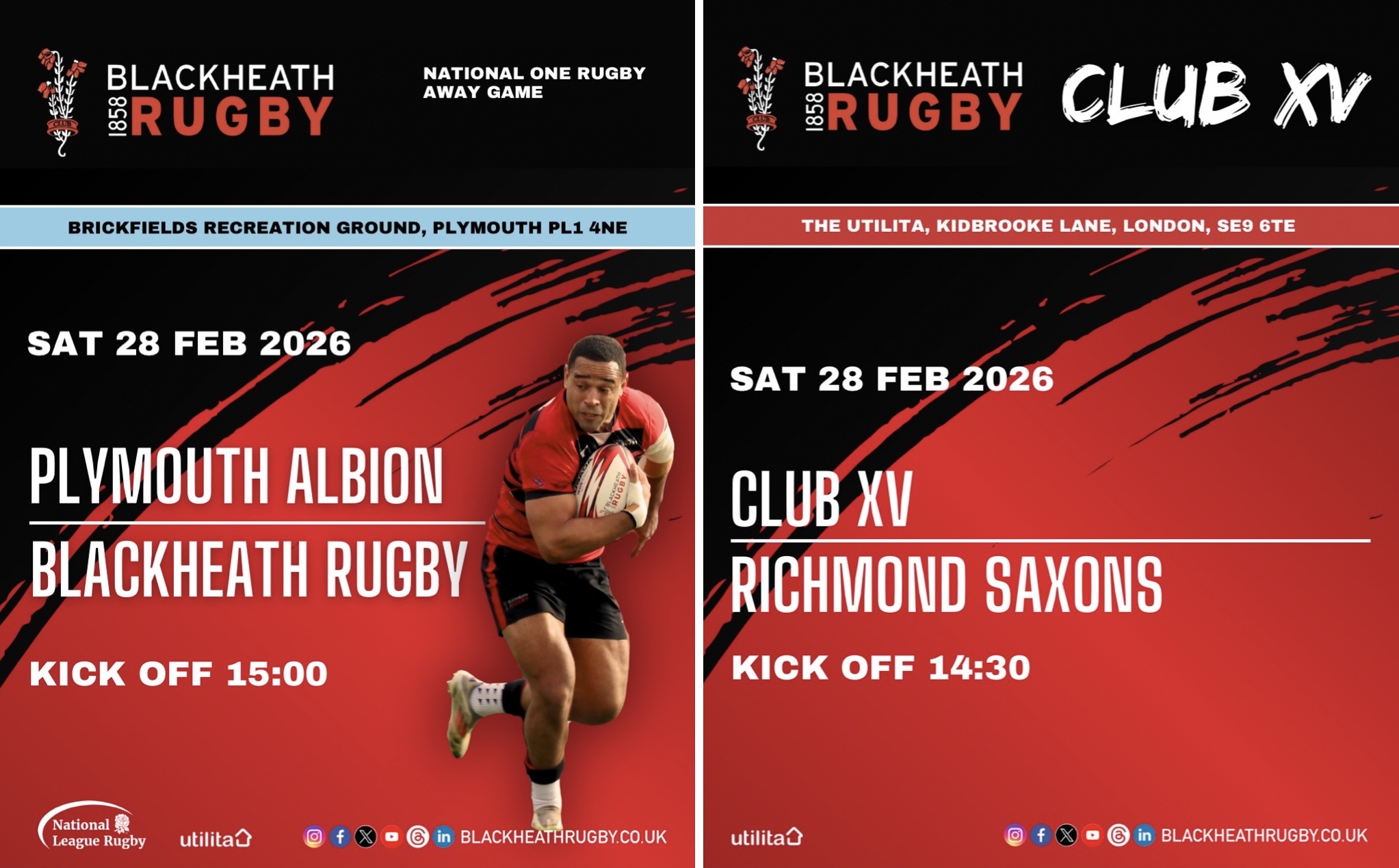 We also have rugby at The Utilita, if you don’t fancy the trip to Brickfieds — the Club XV have a game against Richmond Saxons, and would love to see you there for a 14:30 kick off.
