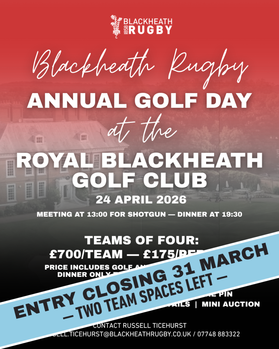 The annual Blackheath Rugby Golf Day will be held on 24 April 2026, at the Royal Blackheath Golf Club.