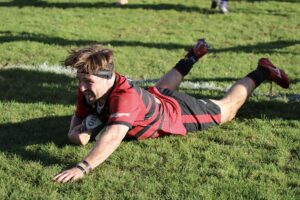It was in the twelfth minute, however, that Rams’ wing Charlie Robson was dismissed for foul play, and although initially seeing ball held up across the goal-line from the resultant lineout, side entry allowed the visitors a second opportunity and Billy Harding successfully grounded.