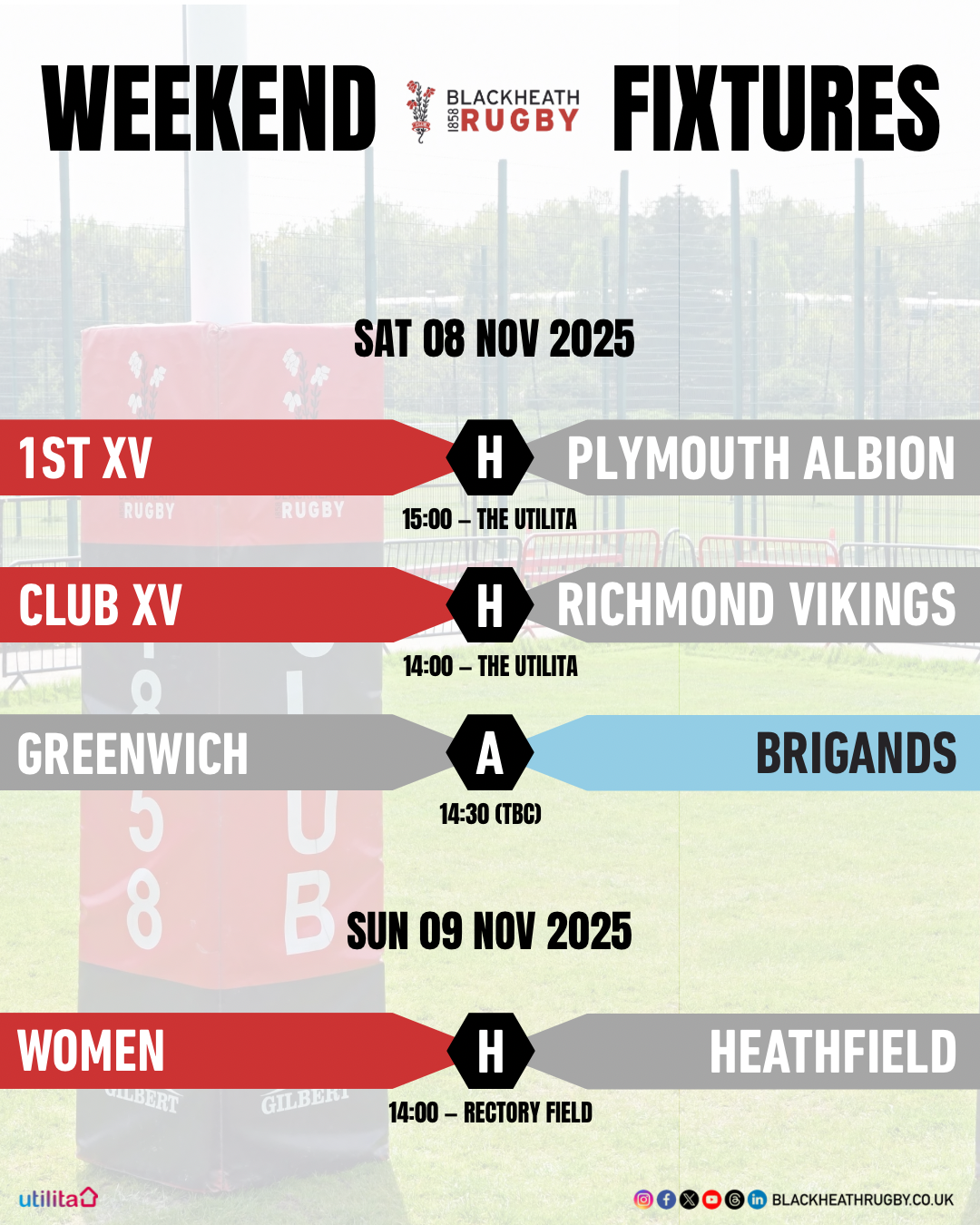 The Club XV game has also been postponed. Keep warm, enjoy your weekend, and we’ll see you at The Utilita next week for the Sale FC and Dorking double header.