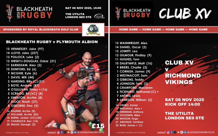 National One is back at the Utilita tomorrow, and we can’t wait to welcome Plymouth Albion through the gates in a game sponsored by the Royal Blackheath Golf Club. Kick off is at 15:00 and tickets cost £15 (buy online in advance https://blackheathrugby.ticketco.events/uk or on the gate).